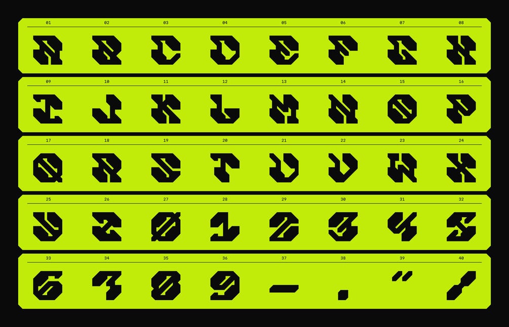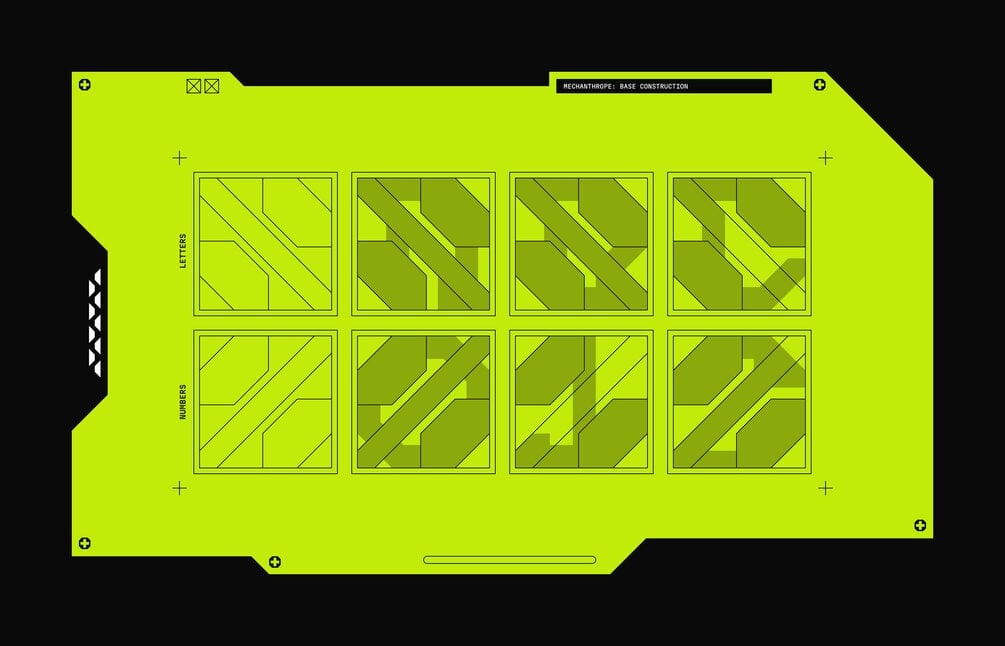 Mechanthrope is a bold, industrial display typeface built from sharp, angular geometry and heavy mechanical cuts. Its letterforms feel engineered rather than drawn, evoking reinforced steel, cybernetic components, and brutalist machinery.