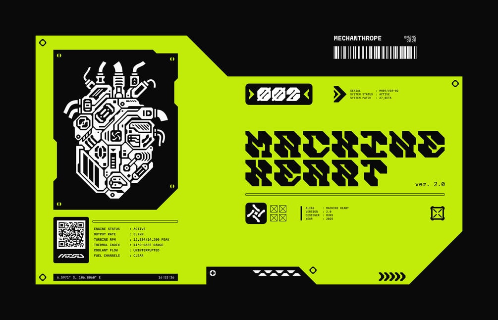 Mechanthrope excels in use cases that demand authority and impact: sci-fi branding, cyberpunk visuals, experimental UI headers, game titles, mecha or AI-themed worlds, and high-concept event identities. It doesn’t aim to be neutral or friendly—this is a font designed to dominate the frame, signaling technology, control, and engineered menace.